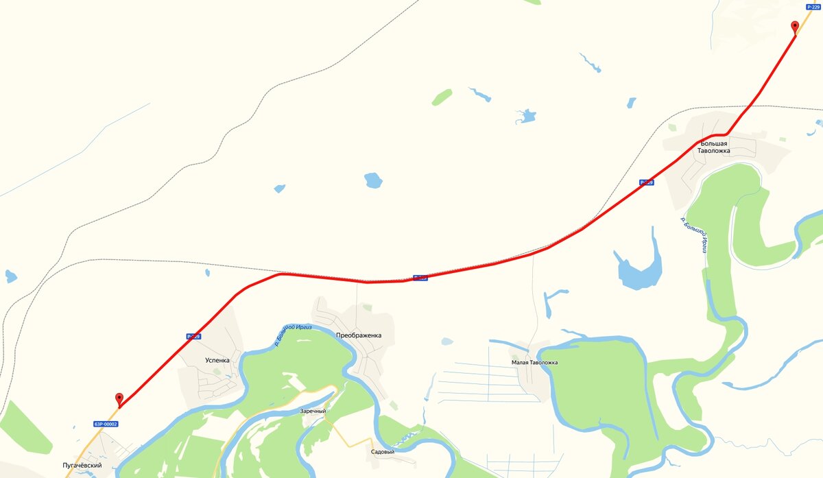 Участок маршрута: Успенка – Преображенка – Малая Таволожка – Большая Таволожка.