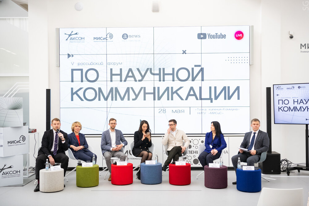 В Москве в НИТУ «МИСиС» на площадке «Точка кипения — Коммуна» состоялся V Российский форум по научной коммуникации — ежегодное событие Ассоциации коммуникаторов в сфере образования и науки (АКСОН), которое объединяет сообщество коммуникационных специалистов в вузах и НИИ, научных журналистов, популяризаторов науки.