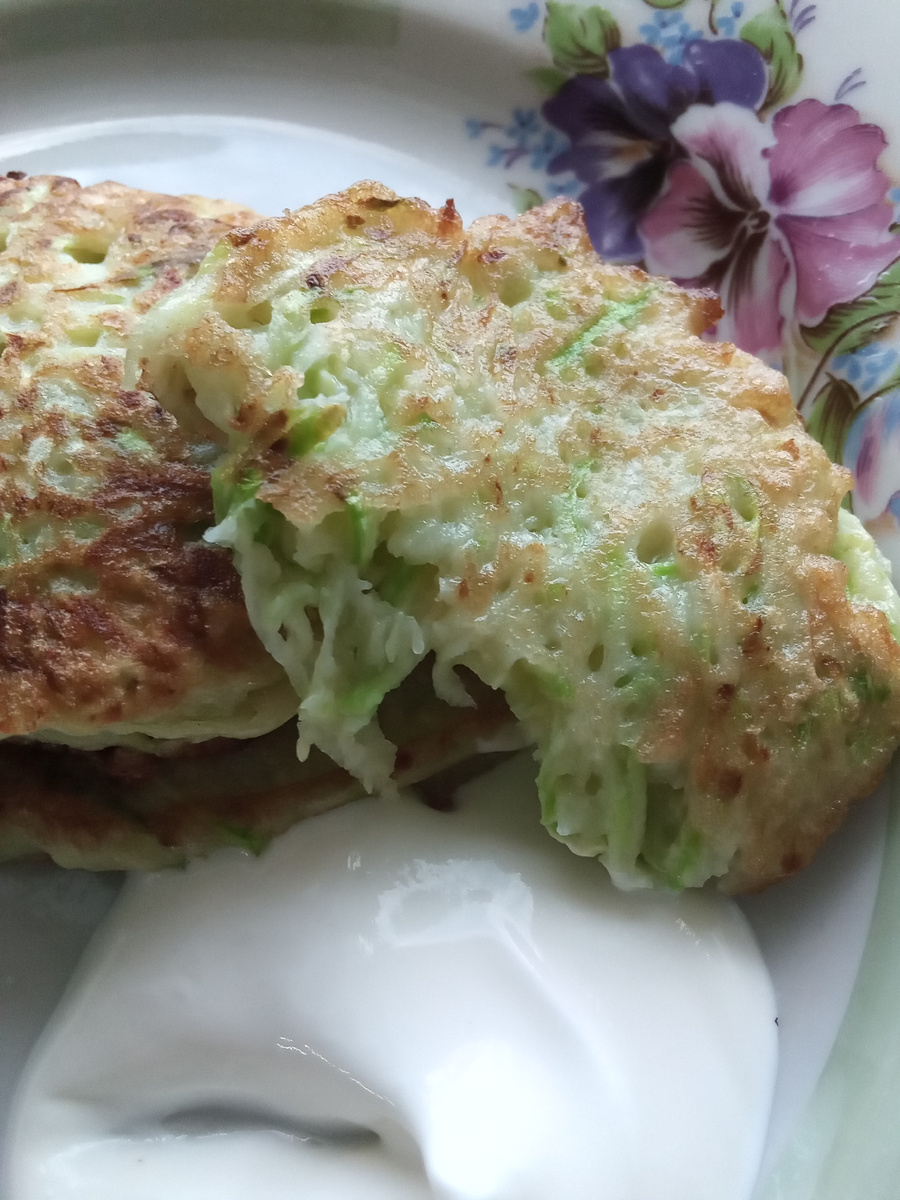 Две идеи для завтрака из кабачков. Всех приветствую на моем канале. Сегодня предложу вам две идеи для завтрака из кабачков. Оладьи из кабачков. Ингредиенты Кабачок небольшой 1 шт Яйцо 1 шт Соль щепотка Мука 2 ст л с горкой Разрыхлителя 1чл Сметана 100 гр Чеснок 1 зубчик Кабачок трём на мелкой тёрке, отжимаем жидкость и добавляем муку, разрыхлитель, соль, яйцо. Перемешиваем. На розогретой сковороде с растительным маслом жарим оладушки на небольшом огне до золотистого цвета. В сметану выдавливаем зубчик чеснока и обмакиваем наши оладушки. Это очень вкусно! Конверт из кабачка. Ингредиенты Кабачок половинка Яйцо 1 шт Соль перец щепотка Овсяная мука, или просто мука 2 стл Кабачок трём на крупной тёрке, добавляем муку, яйцо, соль, перец. На разогретой сковороде с растительным маслом обжариваем большой блин с двух сторон. Разрезаем его от середины к краю по прямой и укладываем начинку ветчина, зелень, сыр, соус и заворачиваем конвертом. Свернутый конверт обжариваем ещё немного с дв