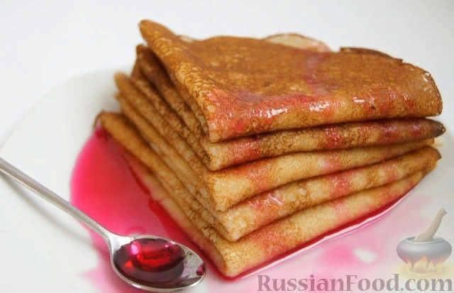 Яйца - 2 шт.Сахар - 2-3 ст. ложки Соль - 0,25 ч. ложки Мука - 200 г (1+1/3 стакана объемом 250 мл) Масло растительное - 2 ст. ложки Масло сливочное для смазывания - 50 г Как готовить? Читайте далее. 1. В миску влить молоко и воду, всыпать сахар, соль, хорошо размешать. 2. Добавить яйца, тщательно взбить венчиком. 3. Постепенно всыпать просеянную муку, постоянно взбивая, мука должна полностью вмешаться, без комочков. 4. В конце влить растительное масло, перемешать. Тесто получится как очень жидкая сметана. 5. Сковороду, желательно с толстым дном, хорошо разогреть. Половником набираем тесто (примерно 1/3 половника), выливаем на сковородку и, вращая сковороду, круговыми движениями распределяем равномерно тесто. Жарить около 15 секунд, до золотистых краёв. 6. Поддеть край блинчика ножом или силиконовой лопаткой и