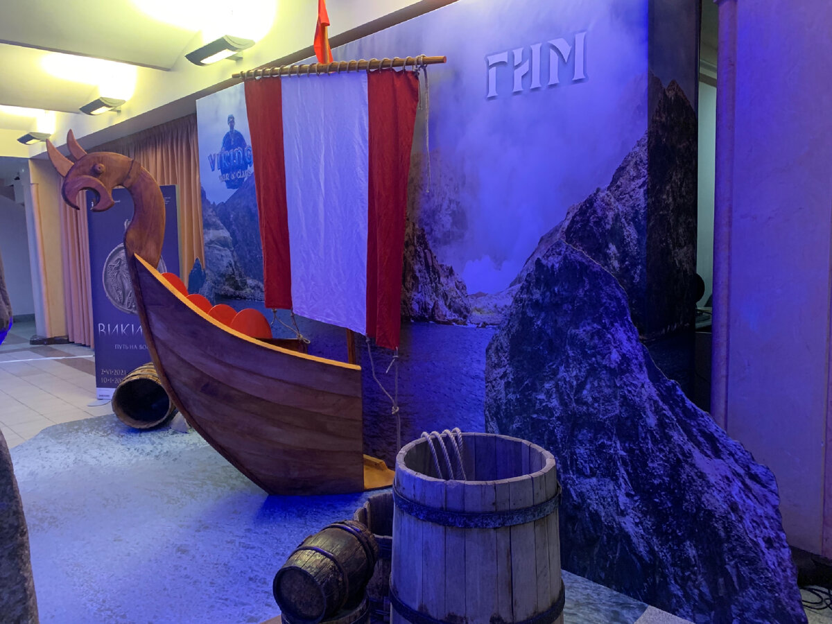 Очень красив дизайн выставки — в центре расположился драккар — военный корабль викингов, символизирующий их военные и торговые походы.