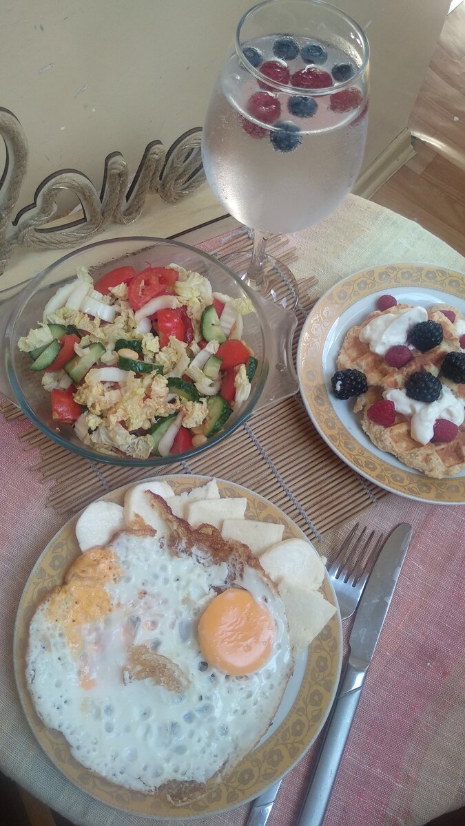За три года в низкоуглеводной системе питания я смогла выработать свою систему, которой стараюсь следовать каждый день. Делюсь своим простым лайфхаком. Сейчас у меня нет необходимости снижать вес и оздоравливать организм. (то есть я не в кетозе постоянно). Моя цель сейчас: питаться так, чтобы было и вкусно, и сытно, и полезно, и разнообразно. Поэтому я создала для себя "Принцип 3 тарелок": 1 тарелка - белково-жировая. Основное блюдо. Это либо яйца, либо птица/мясо/рыба/морепродукты; либо молочка и сыры. И тут нет ограничений в фантазии: омлет из 3 яиц, запеченные бедрышки, стейк, творожная запеканка; креветки, жареные на кокосовом масле. Разнообразие вариантов зашкаливает. При этом всегда можно увеличивать или уменьшать количество жиров. 2 тарелка - клетчатка. Порция салата. Углеводы из овощей в основную граммовку не идут, а получаемая порция клетчатки очень полезна. При этом для создания салата у меня есть правило 6 ингредиентов: основа (многочисленные виды капусты или листовой зелен