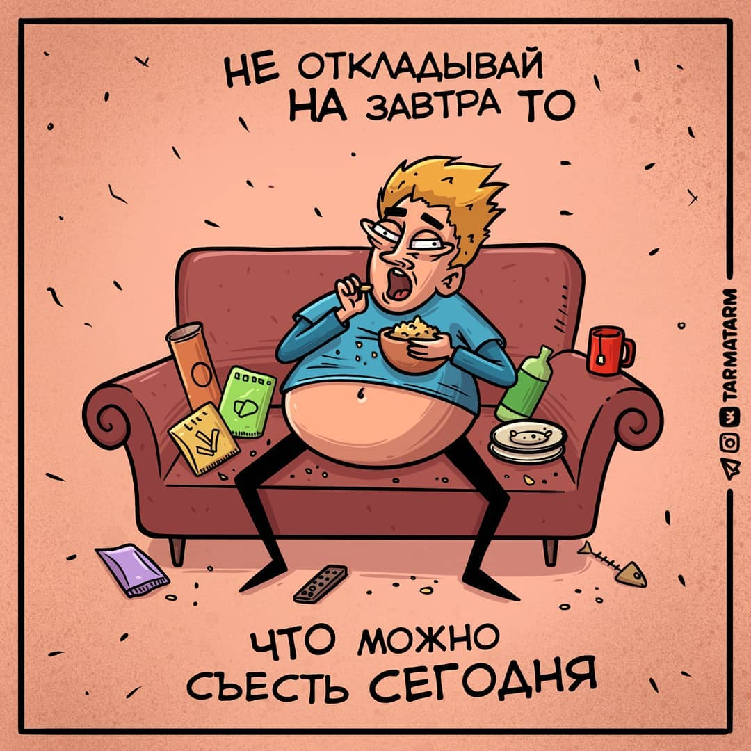Любителей каламбура, абсурдного юмора, саркарзма и добрых комиксов, которые поймет не каждый, приглашаю познакомиться с творчеством Егора — талантливого художника-иллюстратора из Санкт-Петербурга и по совместительству создателя паблика в соцсети ВКонтакте TARMATARM. Комиксы — это относительно недавно появившийся вид искусства, который обосновался на границе литературы и живописи, размывая ее и позволяя плавно перетекать словам в картинку. Своего рода визуальный анекдот, который удачно уместился в стрипе из нескольких кадров. Такая форма подачи комичной или трагичной ситуации позволяет быстро потреблять контент, что особенно ценится в наше время, когда каждая минута на счету. Сакразм от Егора. Этот комикс Егор нарисовал в коллаборации с Андреем Наровым, автором серии комиксов ПРЕКОЛЕР. Статью о которых вы обязательно увидите на канале Успех во всем. Егор тщательно прорабатывает рисунки, его иллюстрации не назовешь простенькими карикатурами сделанными тяп-ляп. Особо радует, когда автор к