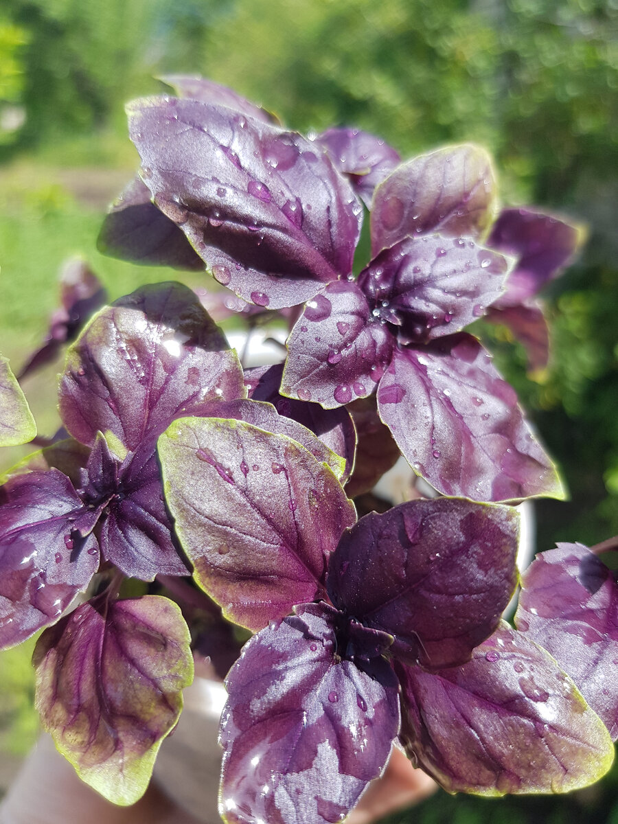 Теплолюбивый эмигрант из Восточной Индии и Ирана уже давно облюбовал земли Кавказа, Закавказья, Средиземноморья и Средней Азии. Случилось это так давно ( в качестве пряности он известен уже в Древней Греции), что считается неотъемлемой часть национальной кухни народов этих регионов. Известен он как базилик, реган, рейхон, райгон, бусуйок, а в Древней Греции - окимон. Где поселился, так там и назвался. В Европе он занял почетное место не только в кулинарии, но и в литературе как "базилик священный"- один из видов , который в Индии стоит на втором месте , после лотоса , по значимости , в индуистских ритуалах , а в древних книгах описывался как "элексир жизни". Существует довольно приличное число разновидностей базилика ( в один год я как-то выращивала семь видов, среди которых был гвоздичный, лимонный, просто зеленый, ярко фиолетовый с большими нежными листьями , фиолетово-зеленый с более жесткой листвой ), но всех их отличает яркий аромат эфирных масел. Должна отметить, что вкус и ар