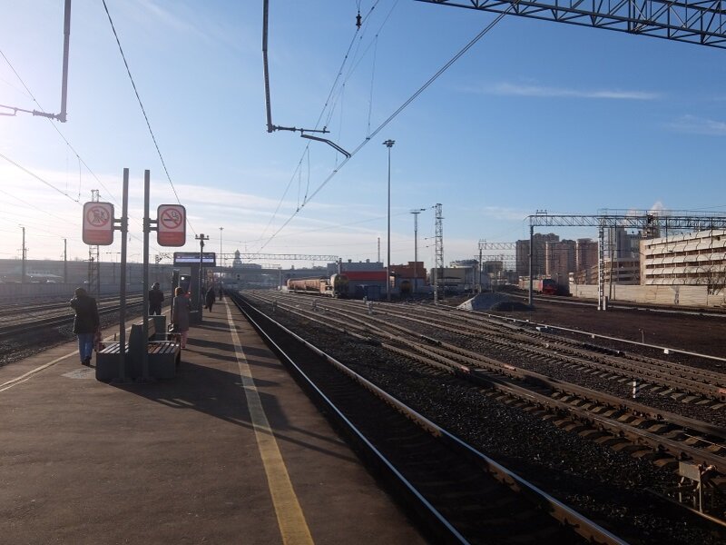 1. В электричку я садился на станции "Москва-Товарная". Это следующий остановочный пункт после Курского вокзала, от которого, как Вы знаете, начинаются сразу два направления - горьковское и, собственно, курское. Примерно до Москвы-Товарной они идут рядом и как раз здесь расходятся. Пути на Владимир и Нижний Новгород тут уходят в сторону, чтобы взобраться на эстакаду над курским направлением и уйти на восток. На этом фото справа как раз видно электричку, удаляющуюся куда-то то ли в Ногинск, то ли в Петушки. При этом горьковские поезда не останавливаются тут, а курские - на расположенной неподалёку платформе Серп и Молот. Логичным выглядело бы совместить платформы двух направлений где-нибудь ближе к метро Авиамоторная. И, судя по имеющейся информации, скоро это реализуют.
