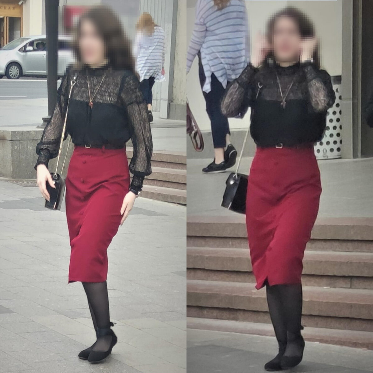 В этой рубрике показываю ошибки в образах, потому что классный результат в стиле = насмотренность и знания. Оцените образ гостьи. Как считаете, в чем проблема? Что не так? Стилистику комплекта задает великолепная, черная блуза, которая выглядит непривлекательно в окружении юбки и балеток. Мы не станем любоваться образом по двум причинам: Подробнее о причине 2. Начнем с нее, потому что если не учтем особенности тела, образ не будет выглядеть здорово, даже если вещи будут дружить по стилю. Условно можем разделить типы шеи на три вида: короткая, средняя, длинная. Девушкам с короткой шеей лучше не носить глухие вороты, не надевать чокеры. Шея гостьи - средняя. Чтобы блуза выглядела хорошо, нужно убрать волосы наверх, иначе шея выглядит короткой, а блуза - некрасивой. Благодаря длинной юбке ноги выглядят короткими, хотя трюк "колготки в тон обуви" должен вытягивать ноги, это не работает, если длина изделия не подходит росту. Для каждого роста - свои правила. Чтобы носить такую длину гость