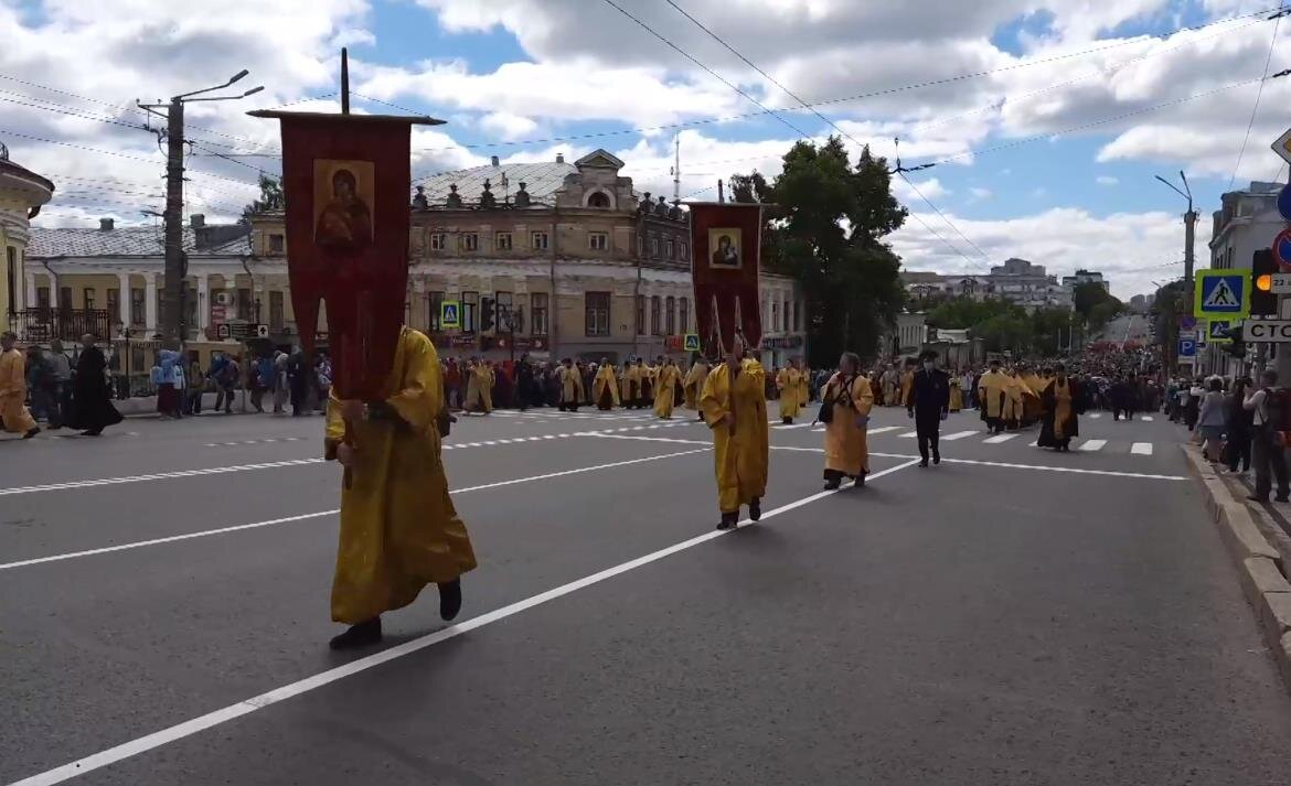 Сегодня, 3 июня, в Кирове начался Великорецкий крестный ход. В 9 часов утра после торжественного богослужения в Свято-Успенском Трифоновом монастыре крестный ход двинулся по улицам Кирова. Около полудня паломники доберутся до Троицкой церкви, а вечером дойдут до села Бобино. Фото – скриншот видео Вятская епархия