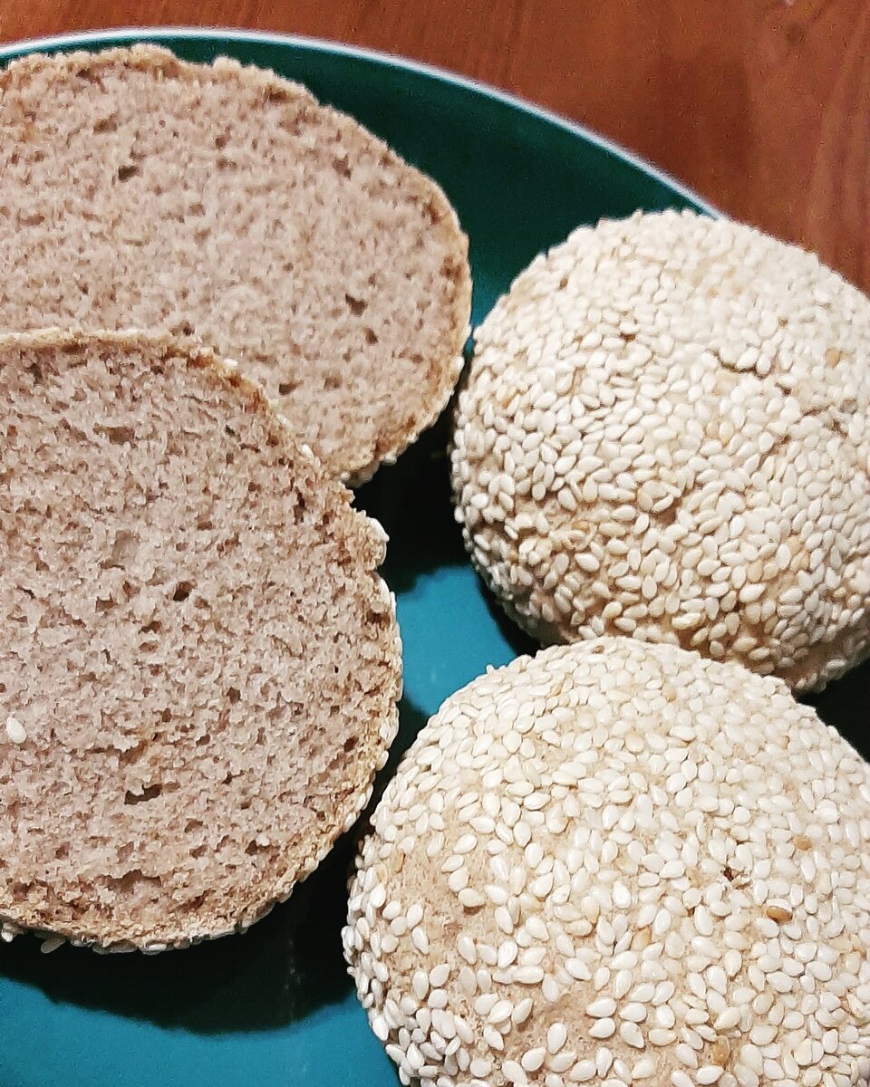 Бутербродные булочки из зеленой гречки и риса сытные и полезные понравятся всем! Рецепт: Необходимо заранее замачить зеленую гречку на ночь, хорошо промыть и подсушить в дегидраторе или в духовке при температуре не выше 50 градусов. Потом измельчаем крупу в кофемолке до состояния муки. Можно провести такую же процедуру и с рисом(бурым), но если у вас нет желания и времени то берём готовую рисовую муку. Далее что нам необходимо: Приготовление: Смешиваем 100 гр муки из зеленой гречки и 50 гр рисовой муки, добавляем соль и псилиум,хорошо размешиваем. Вливаем воду и перемешиваем. Масса сначала получается вязкой, но потом при гашении соды соком лимона она становится более мягкой. Быстро вымешиваем. Слегка смоченными в воде руками формируем булочки, обсыпаем семечками подсолнуха, тыквы или кунжута. На противень выстилаем пергамент и смазываем маслом, т к тесто может сильно прилипнуть. Выпекаем булочки в заранее разогретой духовке 30 минут при температуре 200 градусов. Приятного аппетита!
