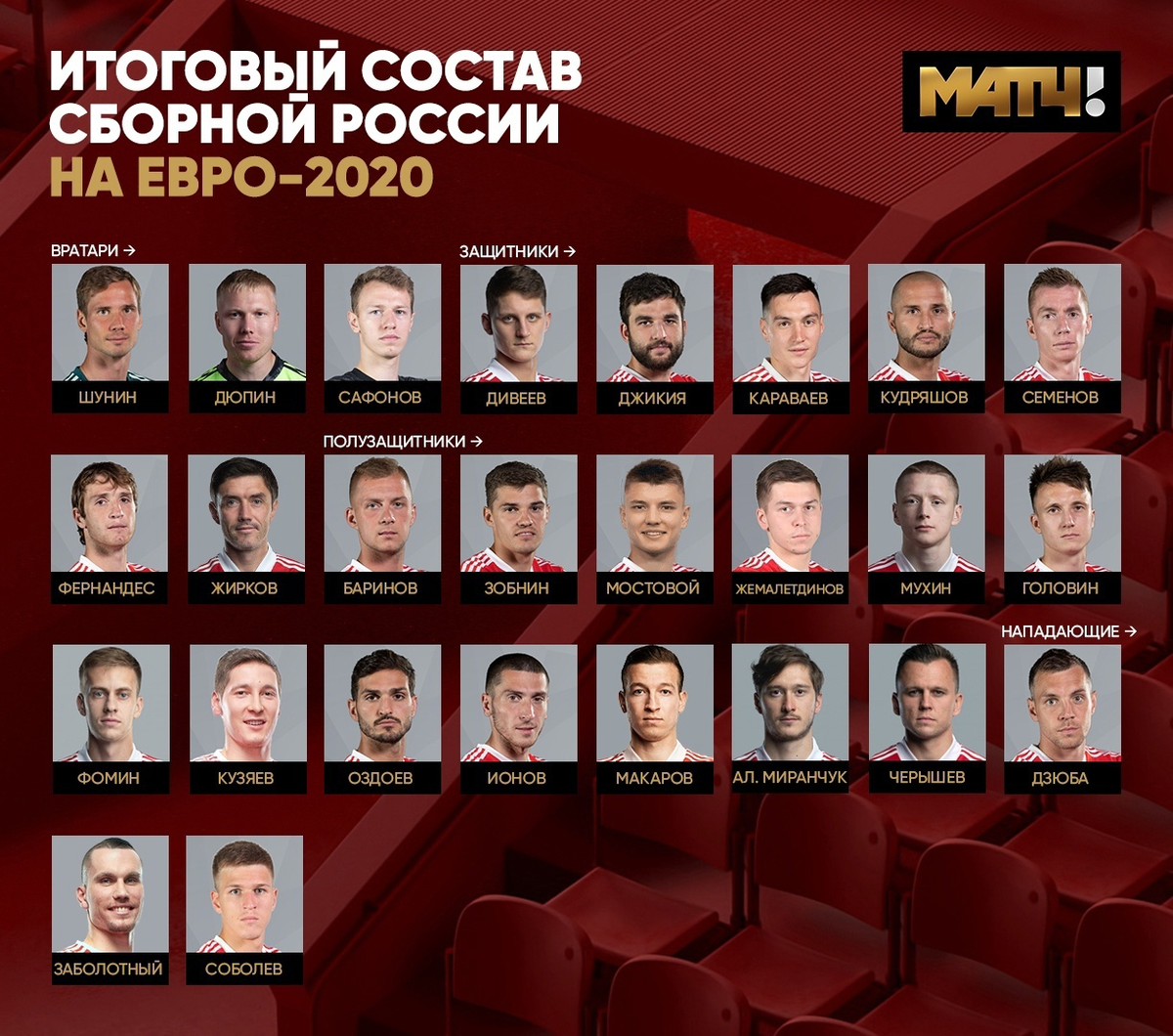 Итоговый состав Сборной России на Евро-2021.