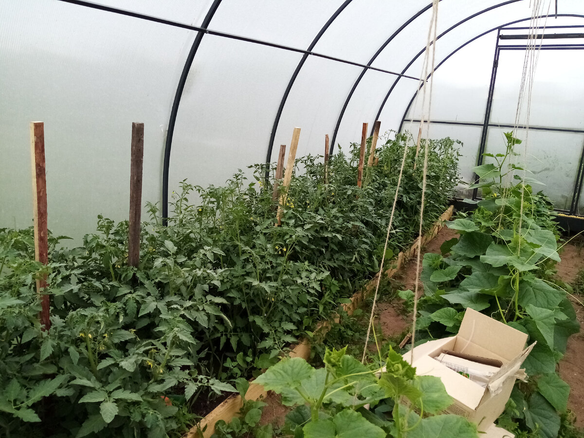 Подсчитываю пропажи, радуюсь новым цветам, настраиваюсь на работу. Меня не было дома ровно 10 суток. В эти дни сначала была жара до +35, потом грозы и дожди, и за это время в огороде и саду всё кардинально изменилось. Томаты резко выросли, обросли пасынками и теплица теперь похожа на джунгли. Хорошо ещё муж подвязал (как смог) те кусты, которые начали падать. Огурцы тоже разраслись и теперь уже нет смысла их формировать - на пасынках уже завязались плоды. Кстати этот сорт - Герман - хорошо плодоносит и без формировки. Отлично подходит для теплицы Томаты цветут полным ходом. Выше на фото сорт томатов Ожерелье красное от фирмы Семена Алтая. Это одна кисть. Ниже на фото томаты Блэк Черри уже с плодами. На грядках творится тоже что-то невообразимое - сплошная лебеда и прочие сорняки, морковь вообще не видно 👇 Ягоды муж конечно же не собирал, многие уже сгнили Из декоративных насаждений больше конечно радости - начали распускаться розы, зацвели почти все летние и многолетние цветы,