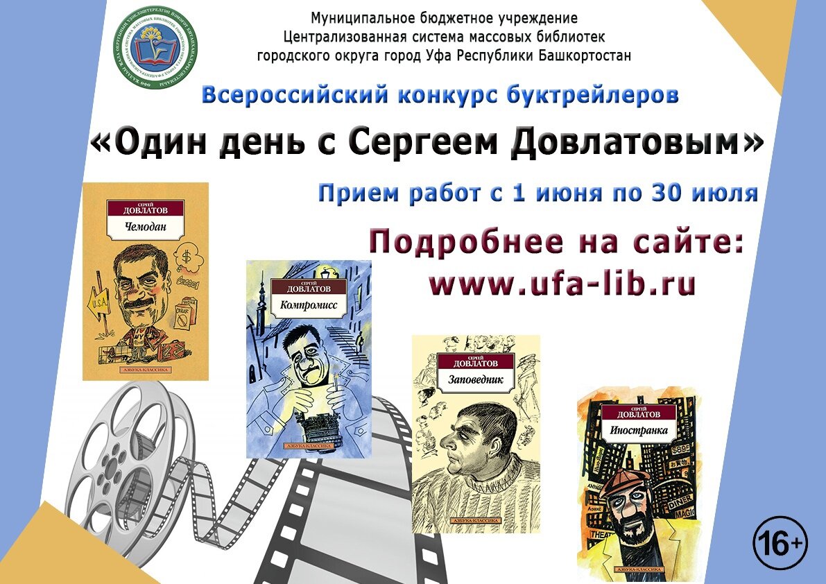 С 01 июня по 03 сентября в Уфе проходит Всероссийский конкурс буктрейлеров «Один день с Сергеем Довлатовым». Его участниками могут стать жители России от 16 лет и старше.