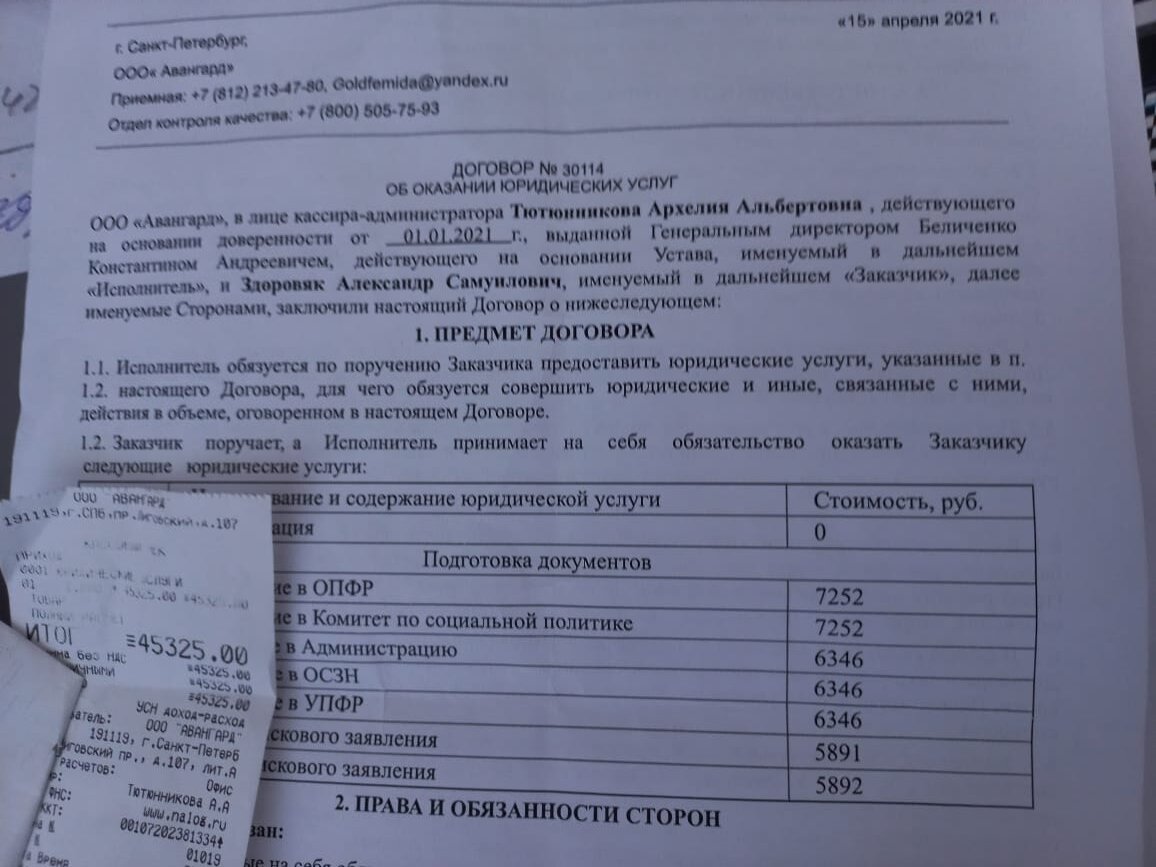 Приветствую всех! Я юрист Беляев Александр Евгеньевич, руководитель ООО "Практика и консалтинг". Часть моих судебных споров связана с решением вопросов по возврату денег с юристов. Сегодня ко мне пришел пожилой мужчина, классный дядька. Он заключил с юристами ООО "Авангард" договор № 30114 на оказание юридических услуг от 15.04. 2021 года и заплатил им 45 325 рублей. Ссылка на отзывы об Авангарде на сайте Отзовик. Меня всегда забавляла внутренняя политика ООО "Авангард" использовать в своем ценообразовании на юридические услуги эти загадочные таинственные цифры "325". А почему не 735? А почему не 625? Чем это мотивировано? Или это такой хитроумный маркетинговый ход? Ладно! Дай Боже здоровья их маркетологам! Юристы Авангард договор подписали с клиентом 15.04. 2021 года. Но заказчик к ним больше ни разу не приезжал. И, соответственно, ООО "Авангард" не успело получить от него подпись на акте об оказании юридических услуг (ч.4 ст. 753 ГК РФ). И по Почте России исполнительные юристы ре