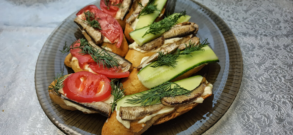 Бутерброды со шпротами,БЕЗ МАСЛА.Мой любимый вариант. Готовим самые простые и очень вкусные бутерброды! Съедаются со стола за считанные минуты! Ломтики батона отправляем в духовку без масла, разогретую до 180° С, на 5 минут:батон должен быть хрустящим, но в тоже время не быть пережаренным. Тем временем в майонез добавляем чеснок 3-4 зубчика. Огурцы и помидоры нарезаем тонкими слайсами. Раскладываем полученную массу по ломтикам сушеного батона.Украшаем бутерброды зеленью и подаём Всем приятного аппетита! Добро пожаловать на мой канал ютуб https://www.youtube.com/channel/UCSQ0MLtfcGdLNraZmpJfH2w