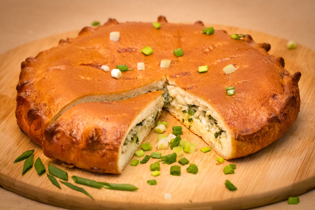 Добрый день!Сегодня вам расскажу рецепт приготовления простого пирога на скорую руку.Пирог получается обалденно вкусно и недорого.Времени занимает буквально 20-30 минут.Порадуйте своих близких такой простой вкусняшкой.Для приготовления нам понадобятся: Начинка Тесто Приготовление Пучок лука и яйца нарезаем на маленькие кусочки.Рыбу так же режем на маленькие кусочки или разделяем на волокна.Перекладываем в миску солим,перчим и тщательно перемешиваем и убираем в сторону. Берем и разбиваем три яйца в миску туда же добавляем кефира и пол чайной ложки соли и все тщательно перемешиваем.Процеживаем муку и добавляем 1.5 ч.л разрыхлителя, пересыпаем в миску к яйцам и кефиру и тщательно перемешиваем. В форму для запекания выливаем равномерно половину нашего будущего теста.Сверху добавляем нашу начину и равномерно распределяем ее по всей формочке.Как только начинку распределили сверху разливаем остататки нашего будущего теста.Убираем форму в разогретую до 180 градусов духовку на 30 минут По исте