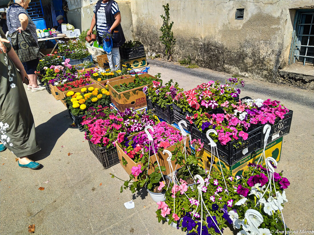 Я всё же не удержался и купил петунию. Приходил в субботу на рынок за клубникой и овощами, набрал всё по списку, уже отправился домой, но не смог равнодушно пройти мимо цветов. Остановился, восхитился и купил дюжину горшочков с петунией. Люблю эти, в общем-то непритязательные, но радостные цветочки. Петуния на нашем Старокрымском рынке продается по 40 рублей за штуку. Неделю назад цена была 50 руб. Отдал за двенадцать штук 480 рублей и пришёл домой довольный как слон. Жена в восторге. Но теперь вопрос: куда сажать? У нас было славное местечко под петунии. Однако сейчас там ад и разруха. Мы же снова строимся - пристраиваем тамбур к гостевому домику. Свободных мест под новые цветы не так уж и много. Лена зимой накупила десятки разных многолетников, терпеливо выращивала в горшочках на подоконниках. Теперь высаживает их в саду, а он у нас не безразмерный. Однако есть резерв в виде больших горшков, в которых росла герань. Герань не пережила зиму. Мы всегда ее на зиму заносили в нео