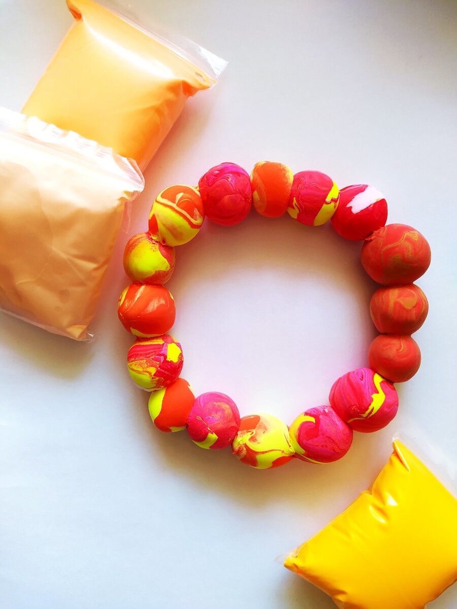 До 1,5 лет в пластилин мы втыкали всё подряд и макароны, и фасоль, и семечки, и зубочистки, и всякие пластмассовые безделушки, а вот ближе к двум годам стали уже поинтереснее заниматься. Наши действия с пластилином (тестом) сводились к следующему: Я показывала ребёнку как правильно отщипывать, то есть учила щипковому захвату, когда большой и указательный пальцы вместе соединяются подушечками. Первое время я, конечно же, вместе с ребёнком отщипывала, выгибала его ладошку и своей рукой по его руке катала шарик, чтобы малыш понял крутящуюся закономерность. При помощи такого массажа стимулировался и речевой центр. Нам очень нравится из шариков делать бусы! Мы для этого берём пластилин разного цвета и вместе катаем шарики, а потом ребёнок их соединяет. Конечно, пластилин по ходу лепки смешивается, но от этого бусы становятся ещё интересней. • Скатывание колбаски (между ладошек и на поверхности, в том числе при помощи скалки Play-Doh). Когда катали колбаску, то представляли, что получается,