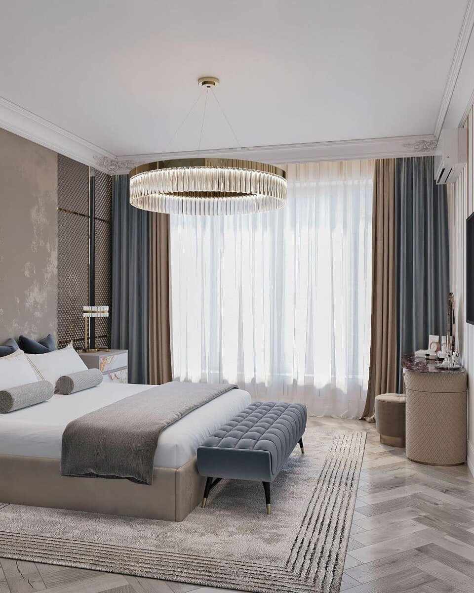 Спальня, пожалуй, единственная комната в доме или квартире, из которой так не хочется выходить, особенно по утрам. При обустройстве спальни важно не только правильно выбрать кровать и матрас, но и верно расположить все предметы мебели в комнате. Только при таком условии отдых сможет стать комфортным и наполняющим. Сегодня хотим поделиться парой секретов, которые мы сами используем в нашей работе: Так и в этом проекте мы придерживались подобных правил. Конечно, залогом хорошего сна является не только правильное расположение кровати в комнате, но и удобный матрас, шторы блэкаут, спокойные дополняющие друг друга цвета отделки и тканей. Но главной изюминкой этой спальни считаем стеновую панель, которая служит изголовьем кровати. Еще раз убеждаемся, что в дизайне нет мелочей. Посмотрите, насколько каждый предмет мебели и декора дополняют друг друга. Считаем, нам удалось создать уютное и комфортное место отдыха. А вам понравился этот проект? Что бы вы изменили в нем?