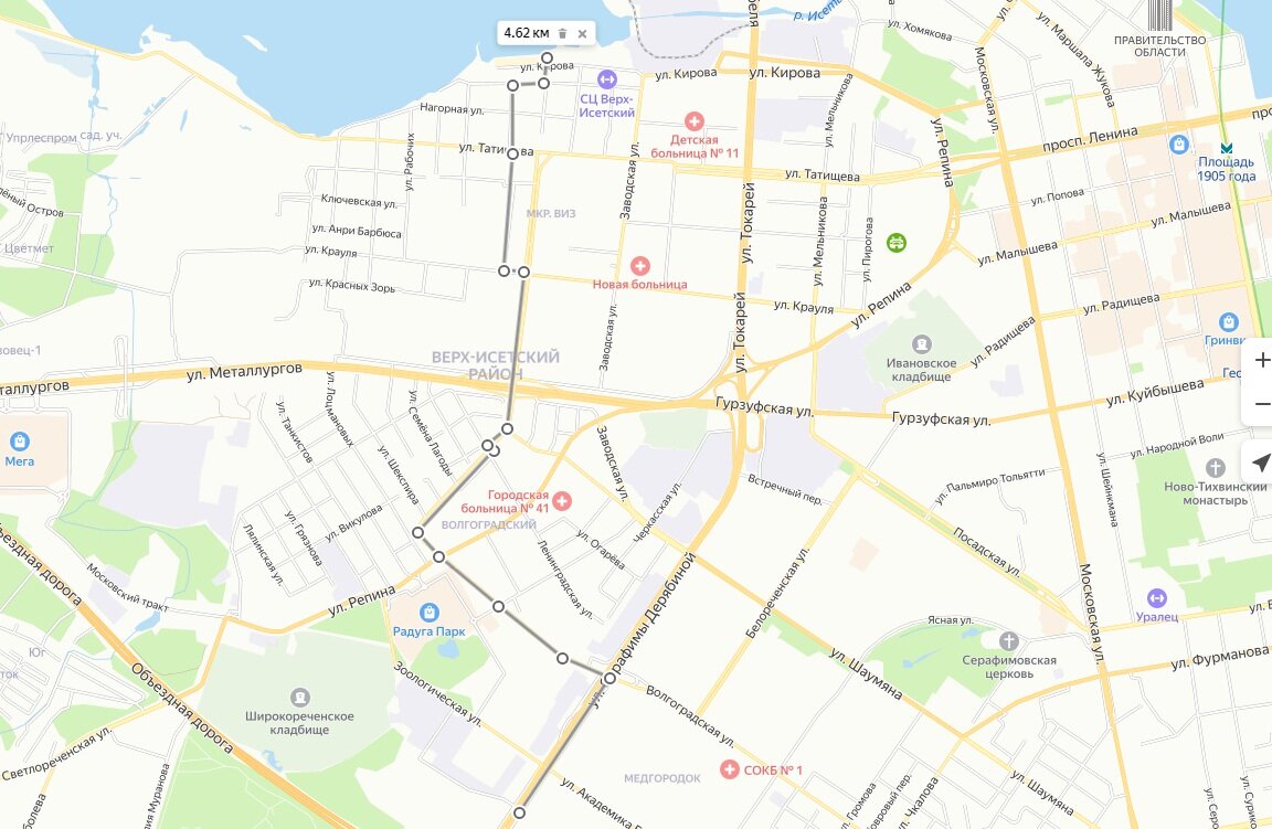 Давно ни куда не ходил пешком на дальние расстояния. Первого июня прогулялся от Серафимы Дерябиной до Верх-Исетского пруда. Решил пройтись через микрорайон Виз, по улицам Волгоградской, мимо ТРЦ Радуга парк, мимо частного сектора на Викулова. По времени заняло на все 1ч. 20 минут. Мой маршрут на карте. Почти пять километров. В этот день было где-то +18 градусов тепла. Наконец-то, спала эта жара и можно комфортно гулять по городу. Фотографировал все на смартфон. 1. 19:10 начинаю свой путь от Серафимы Дерябиной в сторону Академика Бардина. 2. Жду зеленого сигнала светофора. 3. Иду дальше... 4. По Серафимы Дерябиной в сторону Волгогорадской. 5. Одна из первых высоток в юго-западном районе построенных в эпоху СССР. Деловой центр Олимп. Нравится мне это здание, доминанта Юго-западного района. 6. Улица Волгоградская. 7. По Волгоградской в сторону ТРЦ Радуга. 8. Вид с моста на Волгоградской на Серафиму Дерябиной. Один из любимых видов. 9. На проезжающие машины можно смот