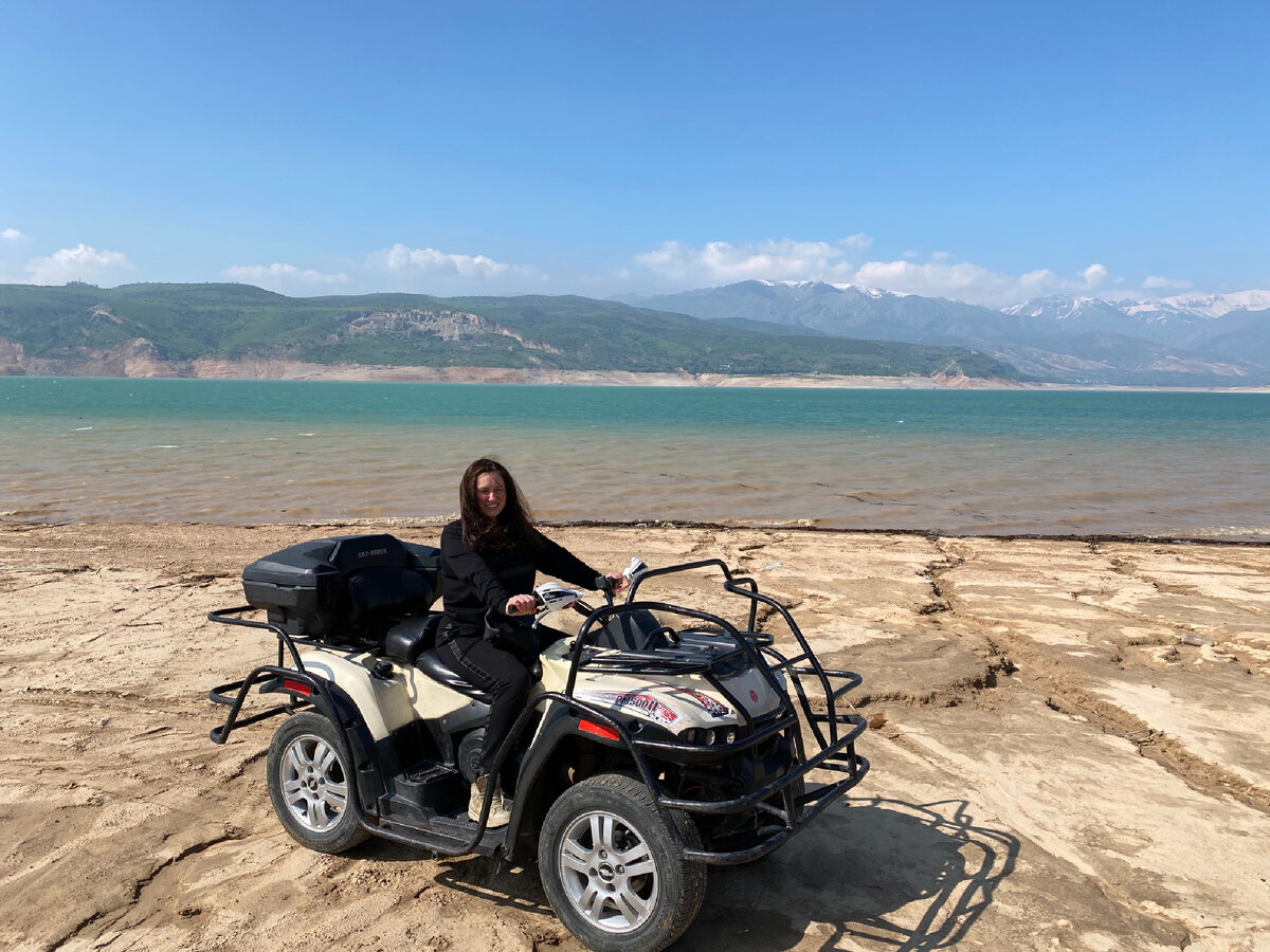 В этом посте я расскажу о том, сколько и за какие развлечения платили мы. Наша поездка была в апреле-мае. Думаю, летом, в сезон, ценник на некоторые развлечения может быть выше. Хотя, на мой взгляд, самое удачное время для посещения Узбекистана - весна. Приехав на пляж Чарвакского водохранилища, мы думали просто прогуляться по пустынному пляжу, но увидели, что хоть народа и нет, развлечения "работают". Нас заинтересовали прогулки на квадроцикле и катере. 10 минут на квадроцикле стоили 50 000 сумм (350 ₽), прогулка на лодке - 300 000 сумм (2000 ₽) за всю лодку. Если бы было 8-10 человек, желающих покататься, обошлось бы совсем дешево. Но мы были вдвоём, поэтому решили немного поторговаться. В итоге и лодка, и квадроцикл вместе обошлись нам в 2000 ₽ (или 300 000 сумм). Катер за эти деньги удивительно новый и быстрый. На небольшой скорости нам дали даже немного порулить. Не обходите прогулку