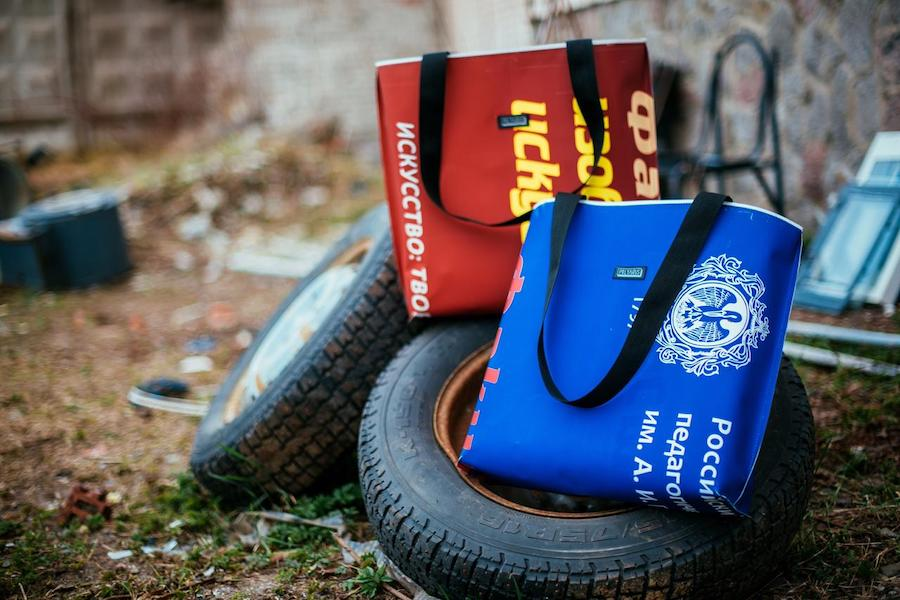 Дизайнер, основательница бренда Polyarus — Александра Полярус — более пяти лет шьет сумки и рюкзаки из нетканых баннеров, ремней безопасности, автомобильных и велосипедных камер. Один из самых больших ее проектов — сотрудничество с компанией Adidas. После Чемпионата мира по футболу 2018 года у Adidas осталось 2 тыс. кв. м баннеров, которые они хотели использовать вторично. Так появились шоперы Polyarus из переработанных рекламных растяжек — подарки спортсменам, клиентам и партнерам. Александра также создавала проекты для Русского музея, «Газпром нефти» и Сбербанка.