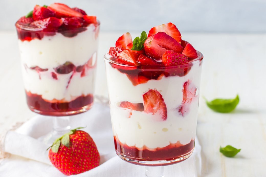 Ягодный десерт - легкий, свежий, ароматный "Ягодный мусс в стакане" Слой 1: •250 г клубники (можно любую ягоду) •160 г сливок 33-35% •70 г сахара •10 г желатина (1:6 с водой) •ваниль Свежую или размороженную клубнику пробить блендером и протереть через сито. Холодные сливки с сахаром и ванилью взбить, соединить с ягодным пюре, растопить желатин и влить, перемешать, разлить по стаканчикам до середины или как сделала я (наискось поставив стаканчики во что нибудь). Дать застыть в холодильнике Слой 2: •250 г смородины(можно любую ягоду) •160 г сливок 33-35% •70 г сахара •10г желатина (1:6 с водой) Проделываем все тоже самое что и с первым слоем, заливаем вторую часть, даём застыть и украшаем Выход 10 стаканчиков объёмом 130 мл Срок хранения 48 часов