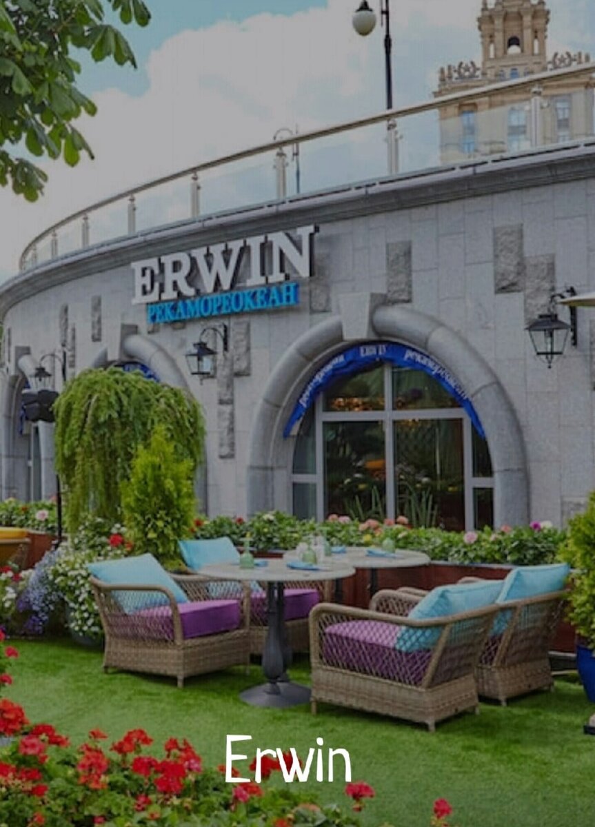Итак, друзья вы находитесь на канале гуляющая по паркам рада видеть вас! Сегодня мы обсудим топ-5 летних веранд Москвы. Читаем, ставим лайки и бегом проводить летние посиделки в уютных и интересных местах. Погнали! 1. Erwin. РекаМореОкеан Как вы уже догадались по названию, это место отлично подойдет для любителей рыбы. Данный ресторан позиционирует себя как, ресторан с широким и разнообразным ассортиментом рыбы и морепродуктов по самым гуманным ценам. А все потому, что рыба предложенная в данном ресторене выловлена в России соответственно и цена не слишком завышена. На деле, цены в меню средние по Москве, но хочется отметить соотношение цен и уровня ресторана. Кому подойдет это место: Ресторан подойдет для пожилых людей, для романтической встречи или просто для приятного вечера в кругу семьи. Интерьер: атмосферное, запоминающееся место - ресторан, с действительно красивым интерьером, приятной музыкой. Огромное пространство, 2 уровня. Острова со свежей рыбой, морепродуктами, огромный о