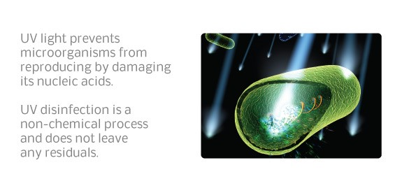 УФ излучение диапозона С вызывает необратимые повреждения структуры ДНК клетки. Эффективность бактерицидной УФ зависит от продолжительности времени, в течение которого микроорганизм подвергается действию к UV, интенсивности и длины волны УФ-излучения, присутствие частиц, которые могут защищать микроорганизмы от УФ, и микроорганизмов, способность противостоять УФ-В облучения.