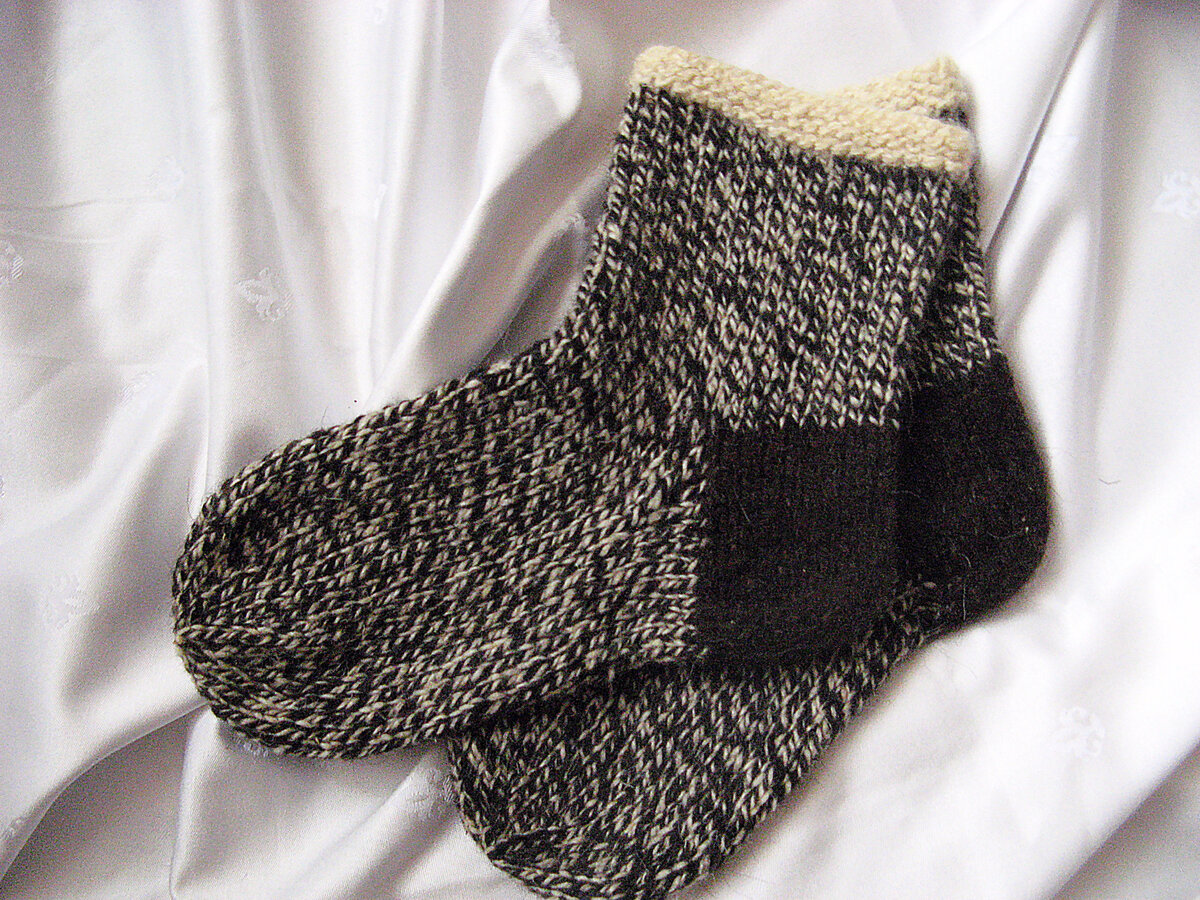 Свои "фирменные" (на самом деле хардкорные "деревенские") носки я вяжу из чистой шерсти, без добавления синтетики, за счет этого они очень полезные и очень теплые. Правда, и протираются побыстрее. Не в последнюю очередь и по этой причине к носкам, которые дарю или продаю, я всегда прилагаю маленькую пасму для починки. Приложила ее, и когда подарила пару носочков юному родственнику. Очень они ему понравились, ходил в них по дому вместо тапочек. И вот собиралась я опять к ним в гости — спросила у мамы парня, что бы им привезти в подарки. — У Ника носки вышли из строя, если свяжешь ему новые — будет замечательно. Наверное, износил в хлам, подумала я. Носки на мужских пятках протираются быстрее, чем на женских, — факт. Только почему так быстро? Ладно, это не мое дело, почему. У меня как раз была готовая пара его размера, взяла ее с собой. Вручила юноше. Он как раз был в старых. Снял их, тут же надел новые. Старые были совсем не заношенными, почти целыми, только на одной пятке светилась не