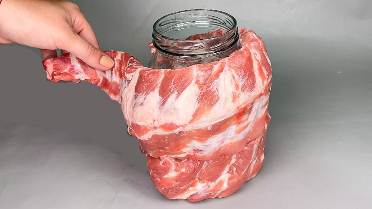 Такие РЁБРЫШКИ хотят попробовать ВСЕ! Нужна только БАНКА и ДУХОВКА! Ингредиенты: 1. Свиные рёбрышки - 800 гр. 2. Крупная луковица - 1 шт. 3. Соль, перец, ароматные травы - по вкусу. 4. Картофель - 4 шт. 5. Сливочное масло - 40 гр. Способ приготовления: 1. Свиные рёбрышки нарезаем на порционные кусочки. 2. Крупную луковицу нарезаем полукольцами и отправляем к рёбрам. 3. Добавляем соль, перец и ароматные травы, у меня кавказские. 4. Тщательно перемешиваем, лук хорошо мнём, чтобы он пустил сок. 5. В чистую и сухую банку отправляем рёбрышки с луком. 6. Делаем крышку из фольги. 7. Картофель нарезаем, солим и перчим. 8. Между картофелинами кладём кусочек сливочного масла и заворачиваем в фольгу. 9. В середину противня ставим банку с рёбрышками, а вокруг неё выкладываем картофель. 10. Отправляем в холодную духовку и нагреваем её до 180 градусов. Запекаем в течение 1 часа 10 минут. После того как приготовится, выключаем духовку, но саму её не открываем в течение 5 минут, чтобы б