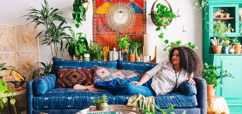 Ни один интерьер в стиле хиппи не обходится без обильной зелени. Комнатные растения улучшают качество воздуха, снижают стресс и создают фен-шуй. Исследования показали, что растения в доме также могут помочь в концентрации и творчестве.