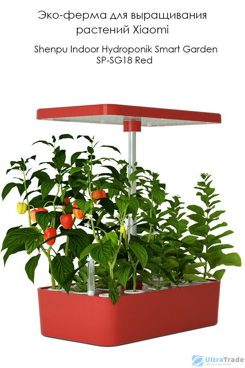 С эко-фермой для выращивания растений Xiaomi Shenpu Indoor Hydroponik Smart Garden SP-SG18 можно получать свежую зелень и овощи круглый год прямо дома. Простое использование В основе прибора лежит принцип гидропоники – выращивание растений без использования земли. На воде и удобрениях растения всходят быстрее. В комплекте поставляются удобрения с необходимыми питательными веществами для естественного выращивания растений, без гербицидов, пестицидов и без ГМО. Установлена система циркуляции воды при помощи насоса. Благодаря светодиодам растения получают необходимое освещение для лучшего роста. Поэтому размещать установку можно даже в помещении без естественного освещения. Выращивать растения – просто В комплекте есть все необходимое для успешного садоводства и огородничества. Вам нужно будет только приобрести те семена, которые вы хотите выращивать. Управление На сенсорной панели всего 5 кнопок, которые отвечают за включение, работу насоса и режимы освещения. Три вида освещения специал