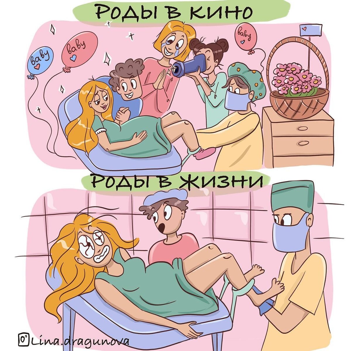 Приветствуем тебя наш дорогой читатель. Каждая девушка, женщина пережила это. Если вдруг вы не женского пола, то рекомендуем остаться и почитать эти комиксы. Ведь ожидание и реальность совпадают не всегда особенно если это связано с ребёнком. И мужчины даже об этом не подозревают. Будьте более бережнее со своей спутницей, не забывайте помогать во всём . 1 - Роды как в сказке Каждая из нас просто мечтает о таких родах, но к сожалению такое бывает и правда только в кино. И как говорится ожидание /реальность 2- Беременность В первую беременность мы набираем немало лишних кг, не считая ребёнка. И во вторую беременность женщина уже не парится по поводу веса и позволяет себе многое. Потом конечно жалеет и страдает, но на то мы и женщины. 3 - Приём узи Каждой женщине хочется узнать пол ребёнка на самых ранних сроках, а на экране видеть как улыбается, машет ручкой . Но по факту врач на ранних сроках просто не может рассмотреть пол малыша, часто бывает что всю беременность ребёнок может быт