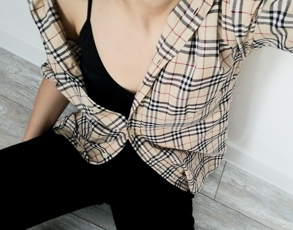 Несколько лет назад мир fashion меня захватил и листая страницы блоггеров, любящих винтаж, я часто наталкивалась на фото образов в рубашках от Burberry в узнаваемую клетку, на дизайн которой Томаса Берберри вдохновил узор английских пледов. В тот момент мне и захотелось купить такую рубашку.