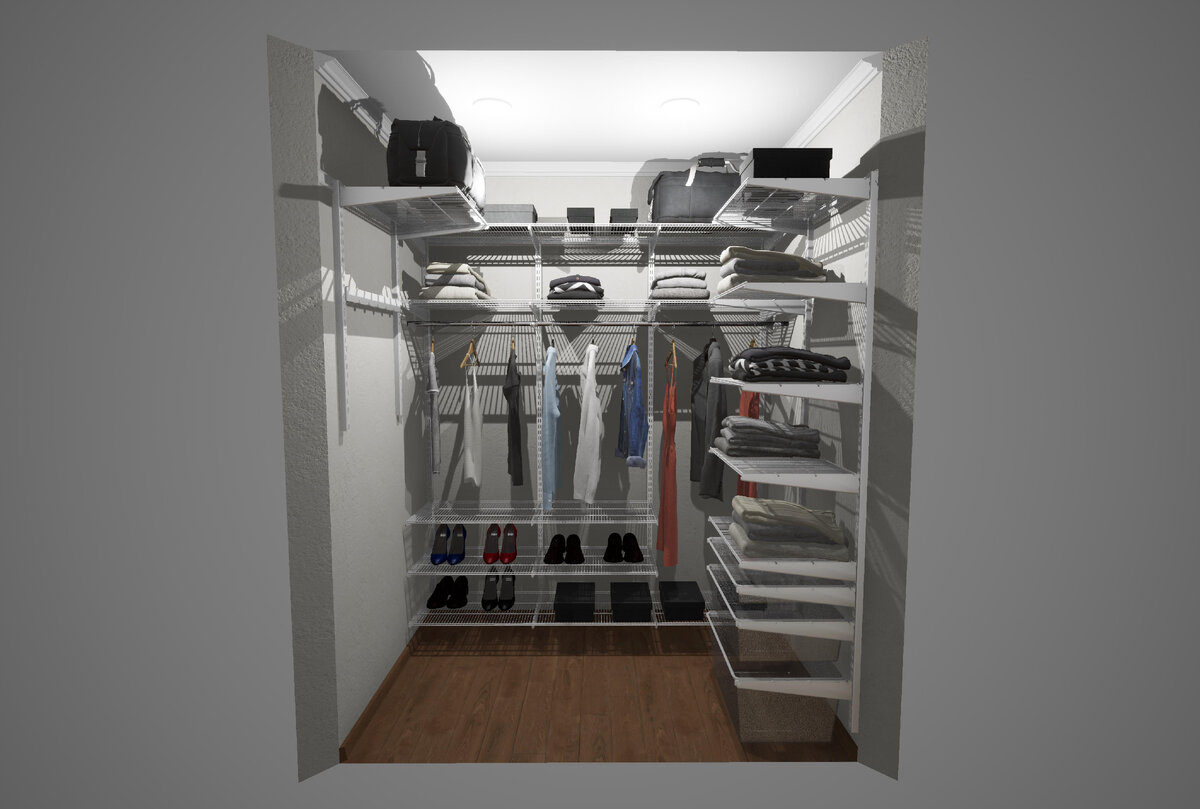 Сегодня рады поделиться с вами одним из наших проектов гардеробной системы, которые мы реализовали в квартире Подмосковья. К нам обратился клиент, который приобрёл квартиру и уже сделал чистовой ремонт, то есть он уже начал заниматься её наполнением. Одно из первых помещений, о котором он подумал, была конечно же гардеробная комната. Ведь необходимо где-то хранить вещи при переезде. Перед нашими дизайнерами была поставлена задача сделать максимально удобную и практичную гардеробную систему. Прежде, чем приступить к отрисовке проекта, нам необходимо получить точные размеры помещения. Для этого есть два варианта: Клиент выбрал первый вариант, после чего мы согласовали с ним дату и время приезда специалиста. После того, как наши дизайнеры получили все необходимые данные, они приступили к созданию дизайн-проекта. Во такую 3д-визуализацию мы отправляем каждому клиенту: Как вы можете видеть, в данном проекте наши дизайнеры предусмотрели всё необходимое, для удобного хранения совершенно разны
