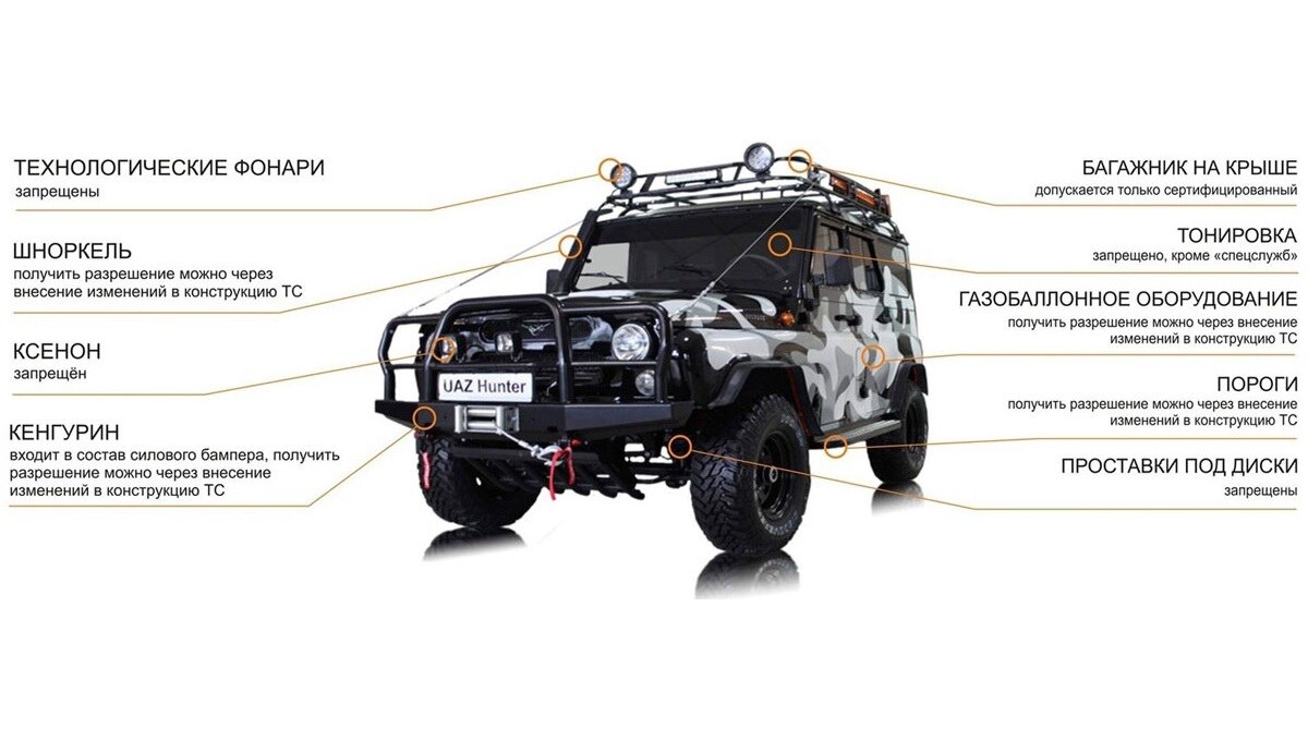 Теперь любое нештатное оборудование, которое не числится в ОТТС (ОТТС — документ, который подтверждает, что автомобиль соответствует требованиям технического регламента Таможенного Союза) нужно будет согласовывать в ГИБДД, а потом проходить проверку в специализированных лабораториях.