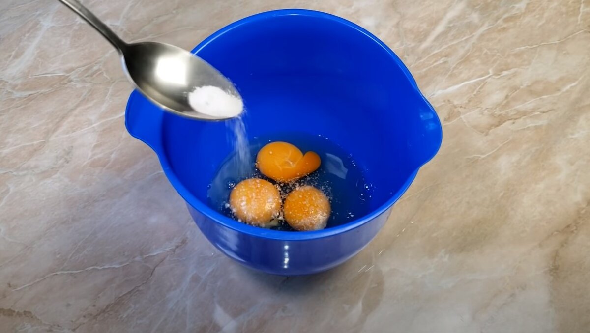 Думаю так яйца вы еще никогда не ели. Приготовим нежный, воздушный и неповторимый завтрак. Понадобится: 3 яйца и полстакана молока. Жарить ничего не будем. Первое-взять небольшую кастрюлю, налить в неё примерно половину, накрыть крышкой и отправить на плиту. Пока вода закипает, понабиться глубокая миска. Взбиваем в миске три куриных яйца. К яйцам добавляем пол чайной ложки соли, затем берём миксер и взбиваем яйца до устойчивой пены. Далее не переставая взбивать яйца, берём полстакана молока и маленькими порциями добавляем молоко и дальше продолжаем взбивать. После того как добавили полстакана молока, продолжаем взбивать одну минуту. Берём обыкновенный целлофановый пакет и отправляем жидкость в пакет, стараемся из пакета выпустить как можно больше воздуха и хорошенько завязываем. Кладём нашу смесь в ещё один пакет для надёжности и также завязываем. Отправляем пакет в кастрюлю с кипящей водой и следим, чтобы хвостик пакета торчал за пределами кастрюли. Накрываем крышкой и оставляем в так