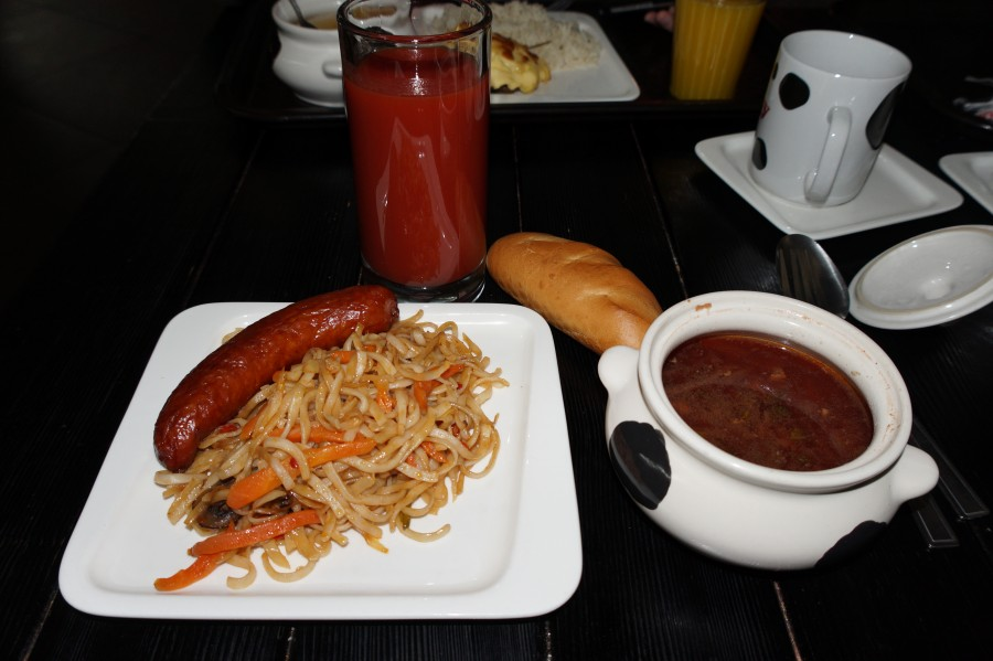 Перед дорогой зашли в первое попавшееся заведение и тут естественно я навалился на жидкое. Солянка, да с лепешкой. Прекрасно же.