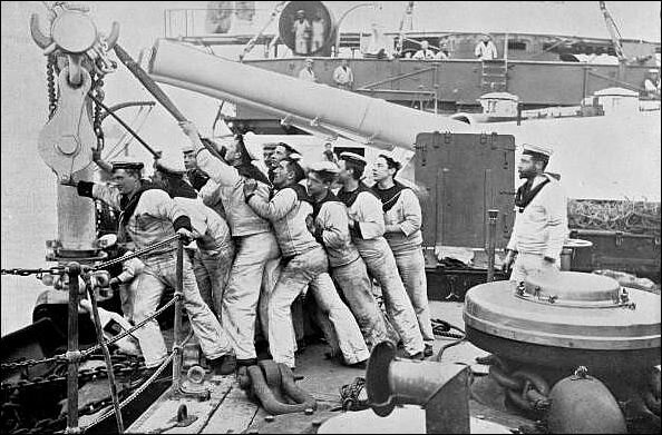 А именно этим занимается толпа моряков на британском эскадренном броненосце HMS Majestic: