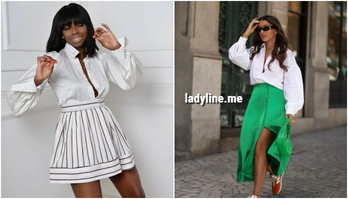 Скорей всего к этому времени уже все современные модницы успели пополнить свой базовый гардероб минималистичной рубашкой. Если вы еще не знаете, с чем лучше всего комбинировать эту деталь женского гардероба, оставайтесь с нами, в этой публикации вы увидите 15 модных образов с женской рубашкой. Первый вариант образа включает в себя базовую рубашку, которую стилисты гармонично “подружили” с колоритной мини юбкой. Обязательно дополняйте свои летние аутфиты стильными сумками, трендовой бижутерией, а также эффектными солнцезащитными очками. Монохромный красный наряд, включающий в себя рубашку и мини кожаную юбку заиграл новыми красками благодаря неоновой сумке и сабо зеленого цвета. Стильную полосатую рубашку свободного фасона гуру моды предлагают комбинировать с яркими мини юбками, базовыми сумками и трендовыми туфлями из прозрачного силикона. Этот кэжуал летний look выглядит стильно и современно за счет неоновой рубашки, белых бермуд, светлой бейсболки и атласных слингбэков фиолетового цв
