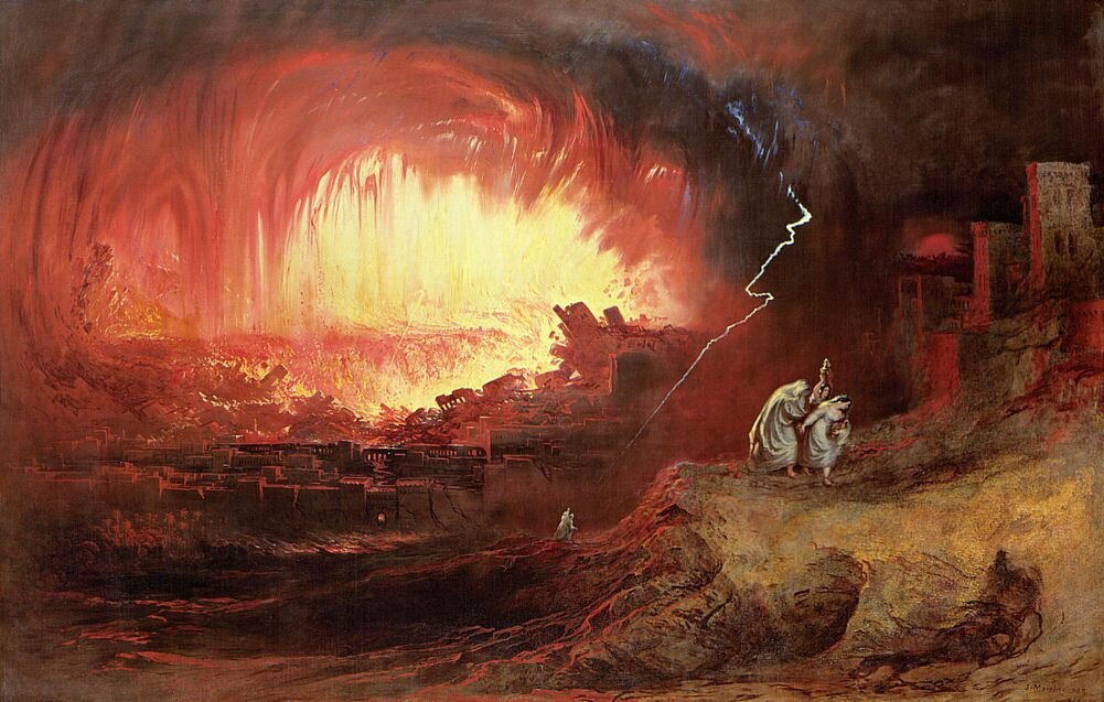 На картине изображено то, что наши предки называли Градовыми убоями, Это выпадение на земную поверхность кометного вещества и соответствующие этому разрушения. Хочу обратить ваше внимание на образ двуглавого теленка. Вот он красавец - недоразвитый Гудам. А две головы у него потому, что в результате ювелирного взрыва второй звезды Солнечной системы Селена, вещество сорванной с него литосферы образовало два потока. О чем, как выясняется, прекрасно знал автор этой картины. Он также отразил в ней то, что теленок так и не вырос и не стал быком.