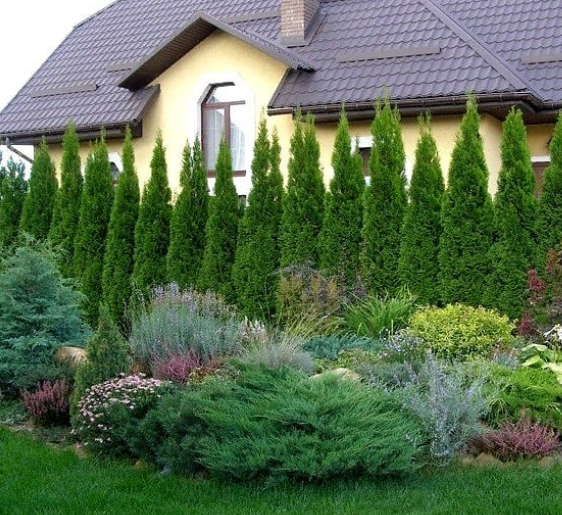 Густо посаженные в ряд растения сделают участок красивым и «живым», образуя изгородь. Живая изгородь скроет от лишних взглядов, хорошо держит форму при регулярной стрижке и подарит эстетический вид любому участку.