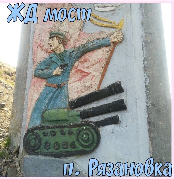 Рубрика "Интересные места от Норбик", больше интересного на норбик.рф (раздел блог) На фото – фрагменты опор железнодорожного моста в Хасанском районе, над автодорогой недалеко от Рязановки. Мост был достроен в 1941 году, а барельефы выполнены умельцами – служивыми, в память пограничникам – участникам событий того времени, Хасанских боёв между Советским Союзом и Японией в 1938 г. На основном пролете моста и сейчас присутствуют надписи “Да здравствует Советский Союз” и “Привет участникам Хасанских боёв”. В центральной части вверху сохранился удивительный барельеф. Если помните, в советское время в центральных газетах у заголовка публиковались в ряд в полупрофиль портреты вождей мирового пролетариата – Маркса, Энгельса и Ленина. До развенчания культа личности Сталина, он также был изображен среди них, но впоследствии образ исключили (последние 2 фото). Так вот на этом мосту просматриваются четыре профиля, в том числе Иосифа Сталина, но видимо после его смерти, барельеф затесали и лицо
