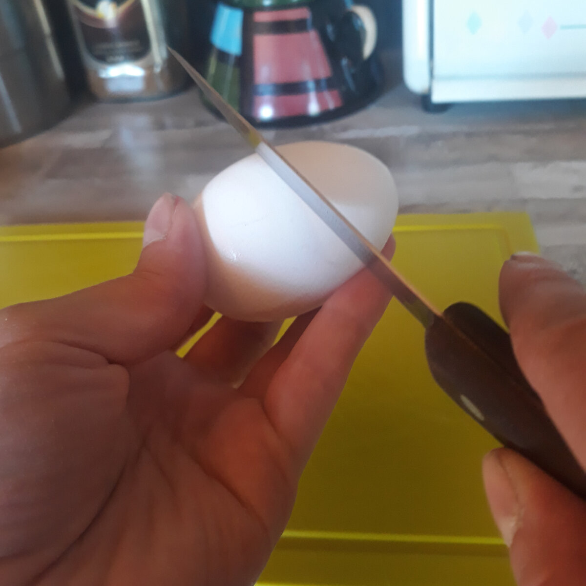 Яйцо разбивается при ударе о плоскую поверхность. Стол или разделочная доска вполне для э