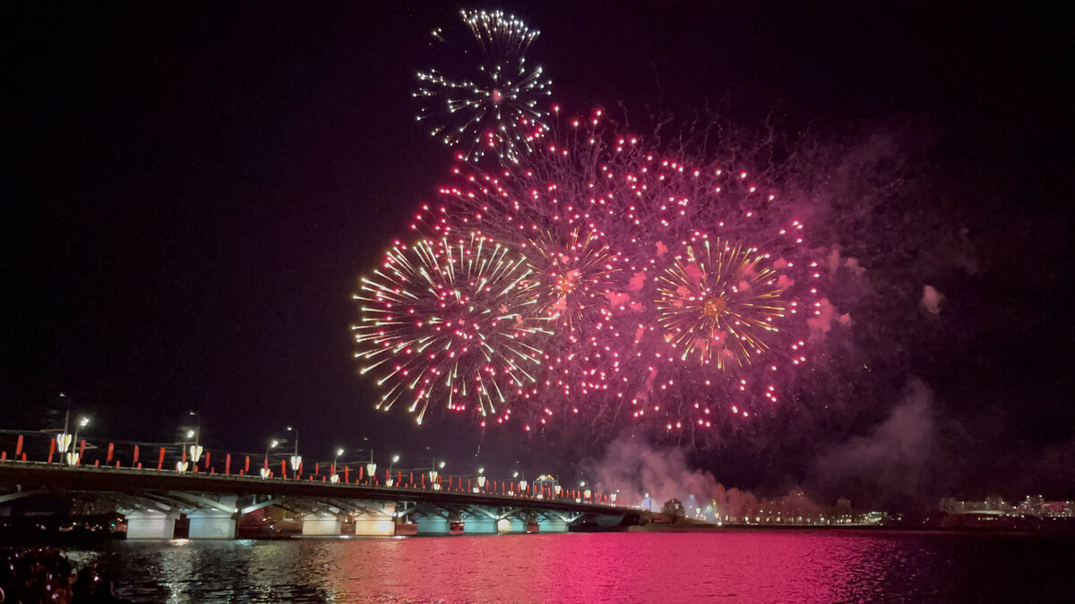 Салют Победы в Воронеже трационно прошел возле Чернавского моста и собрал тысячи восторженных зрителей.