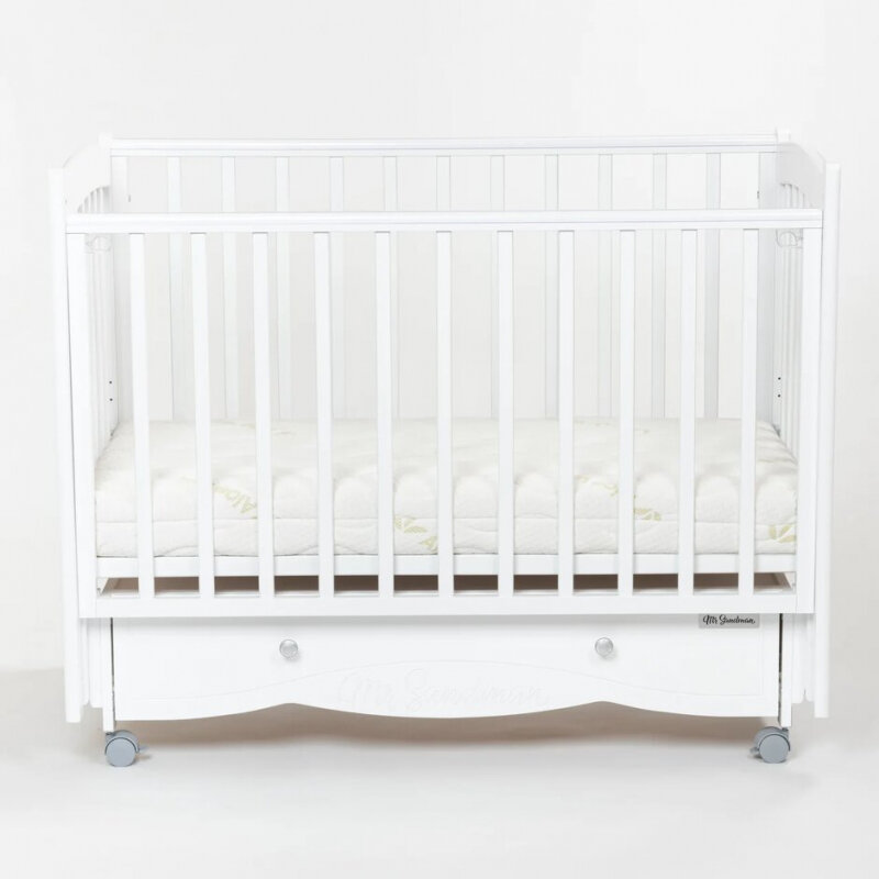 Кроватка оснащена универсальным маятником. То есть при сборке его можно сделать поперечным или продольным, выбирать вам.