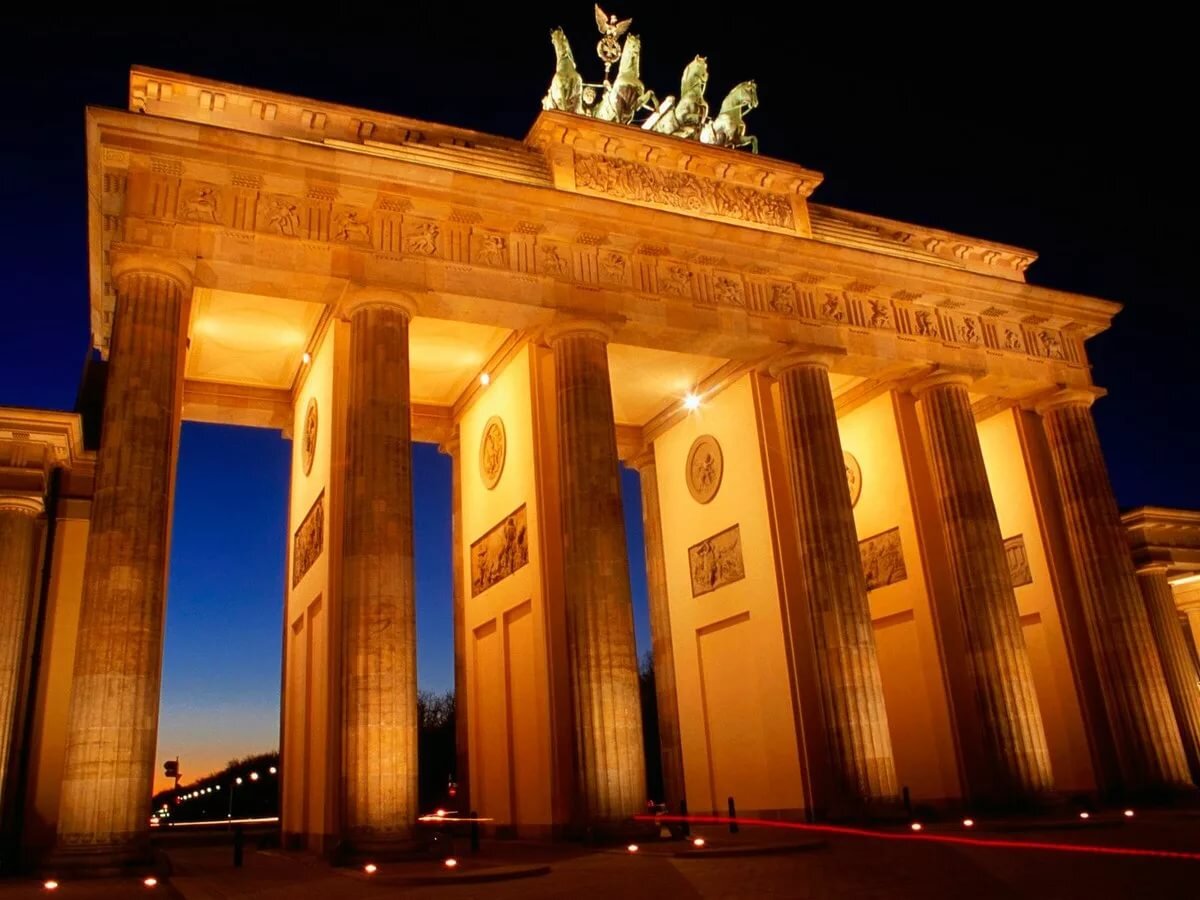 Бранденбургские ворота Несомненно, это символ города и символ воссоединения. Впервые проект был завершён в 1791 году, это были только одни из многих старых городских ворот, окружающих тогда еще управляемый Берлин. Стиль берлинского классицизма поражает своим великолепием и в наше время. Во время Второй мировой войны ворота были сильно повреждены, в частности, квадрига. В 1956 году она была восстановлена. Ворота прекрасно дополняют Парижская площадь, на которой до сих пор находятся многие важные здания города, такие как исторический отель Adlon или Академия искусств. Прямо у Бранденбургских ворот находится одноимённый музей, который предлагает много интересной информации. Жандармский рынок В непосредственной близости от Фридрихштрассе, эксклюзивной торговой улицы в районе Берлин Митте, находится одна из самых красивых площадей Берлина – Жандарменмаркт или Жандармский рынок. В центре композиции расположен концертный дом, спроектированным Шинкелем, а также Немецкий и Французский собор.