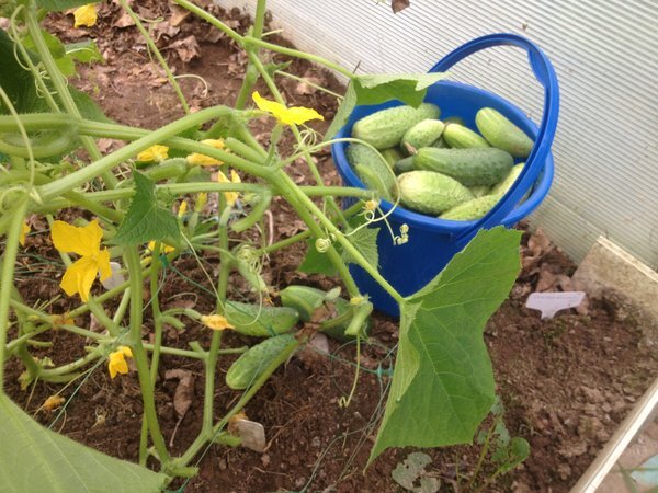 Я беру ножницы и обрезаю у них все нижние листья. Вы спросите: «Зачем?». На самом деле, все очень просто. Вернее ответ на этот ваш вопрос простой: «Мне не нужны листья, мне нужны огурцы.» Я начинала писать эту статью 3 июля в 2018-м. И огурцов к тому дню мы уже собрали и съели довольно много – 45 литров. А к 20 июля огурцов мы уже собрали – 67 литров. И я заметила, что в середине сезона, огурцов за листьями совсем не видно. И поливать их неудобно, и листья снизу начинают желтеть. Обрезаю с двух сторон, особенно все пожелтевшие и мелкие. Полностью освобождаю стебель снизу. Некоторые листья вырезаю и из середины, если они очень большие. Вы спросите, а не начнут ли огурцы «истекать растительным соком» , ведь столько маленьких порезов.... Не начнут. Подумайте сами, ведь когда мы собираем огурцы, то тоже наносим огуречной плети маленькие ранки в месте отлома. Зато теперь при поливе сразу видно куда поливать. И не надо лить воду на листья, огурцы лучше проветриваются и не болеют. А открытые