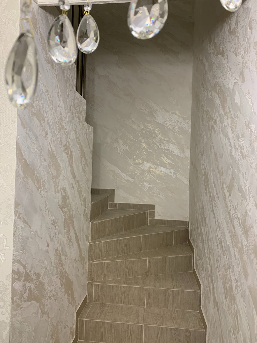 Проект 03/2021. Лестничный марш в доме, Новороссийск — Rivedil DecorFondo + Marmorino + Кристл + Лазурь белое золото