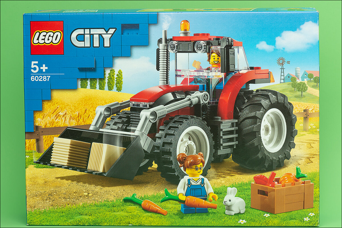 Отправляйтесь в деревню на легендарном тракторе LEGO® City. Огромные задние колёса позволяют ему проехать по любому бездорожью. Загрузите в ковш трактора тюки сена и ящик с тыквой, яблоками и морковью. Затем поднимите стрелу и ковш вверх и отвезите груз фермеру и его дочери — им надо кормить голодного кролика!