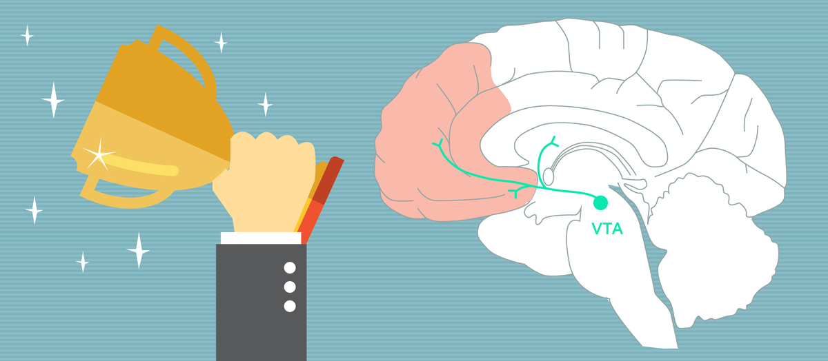 Дофамин служит важной частью «системы вознаграждения» мозга, стимулирует и фокусирует человека к продуктивной деятельности. Изначально учёные считали его гормоном получаемого удовольствия, но в последних исследованиях выяснилось, что дофамин скорее ассоциируется с опережением желания, т.е. являет